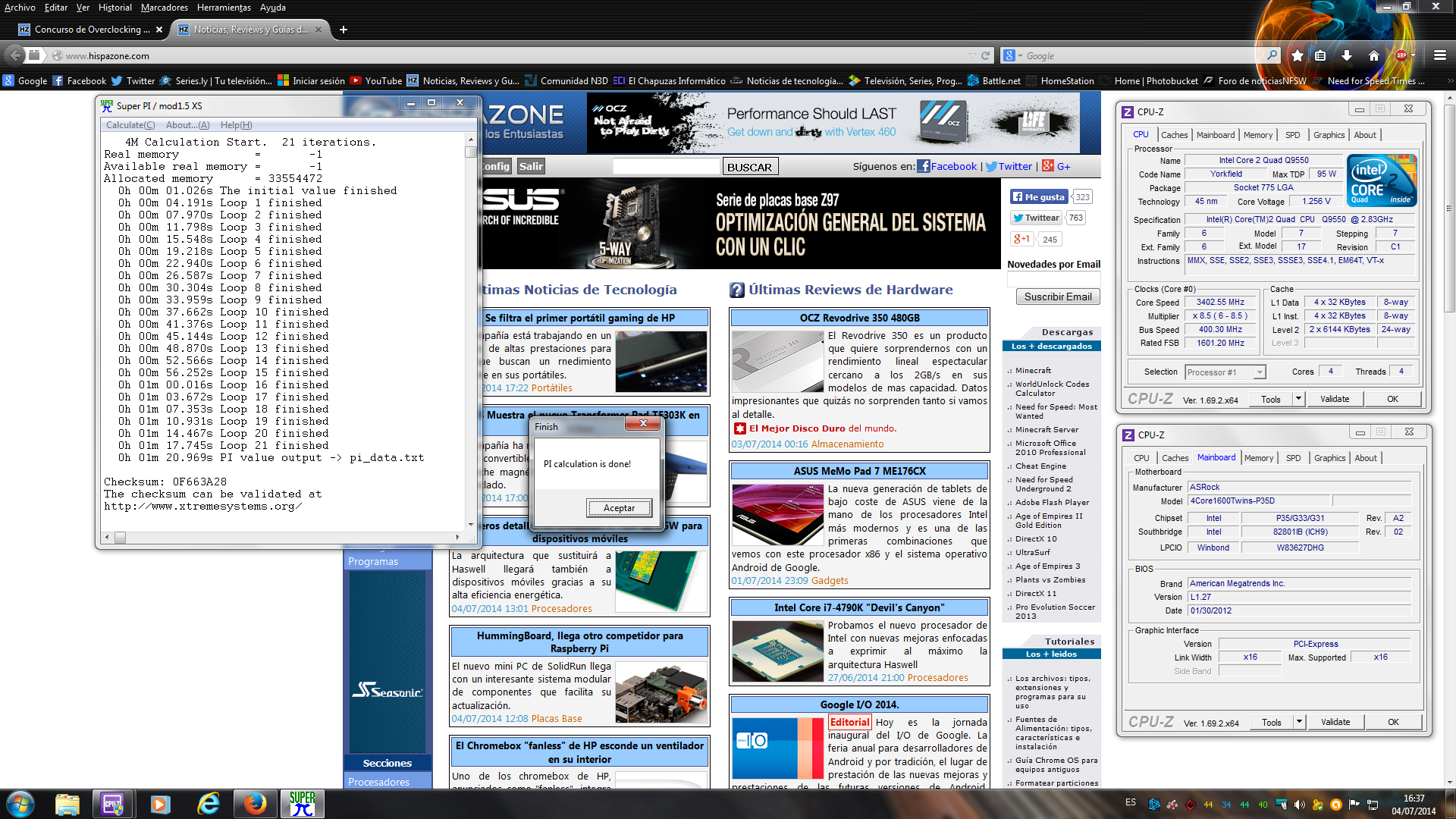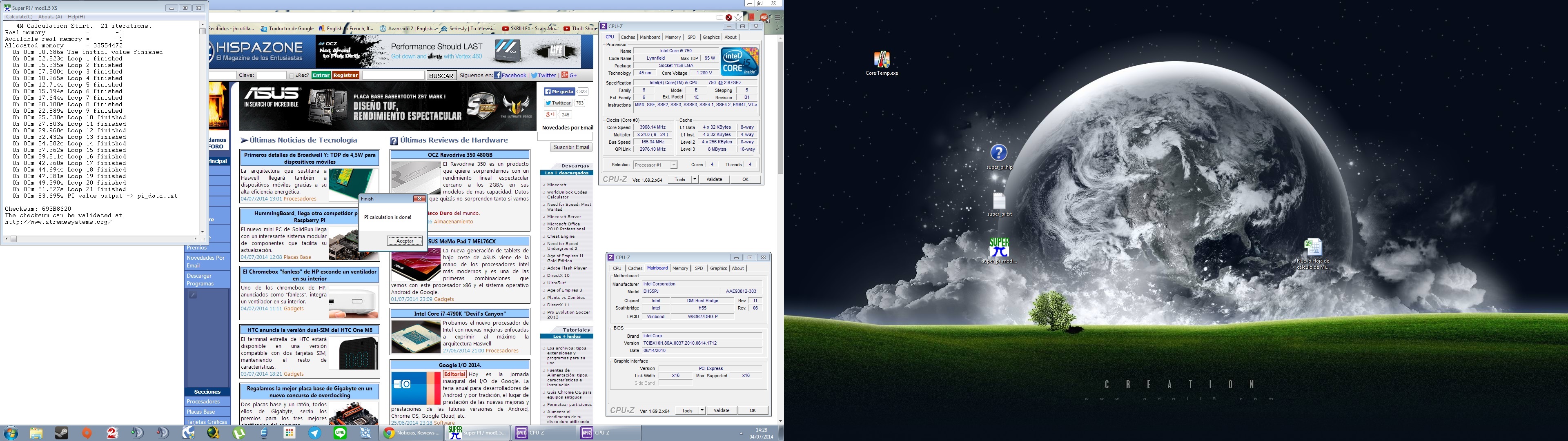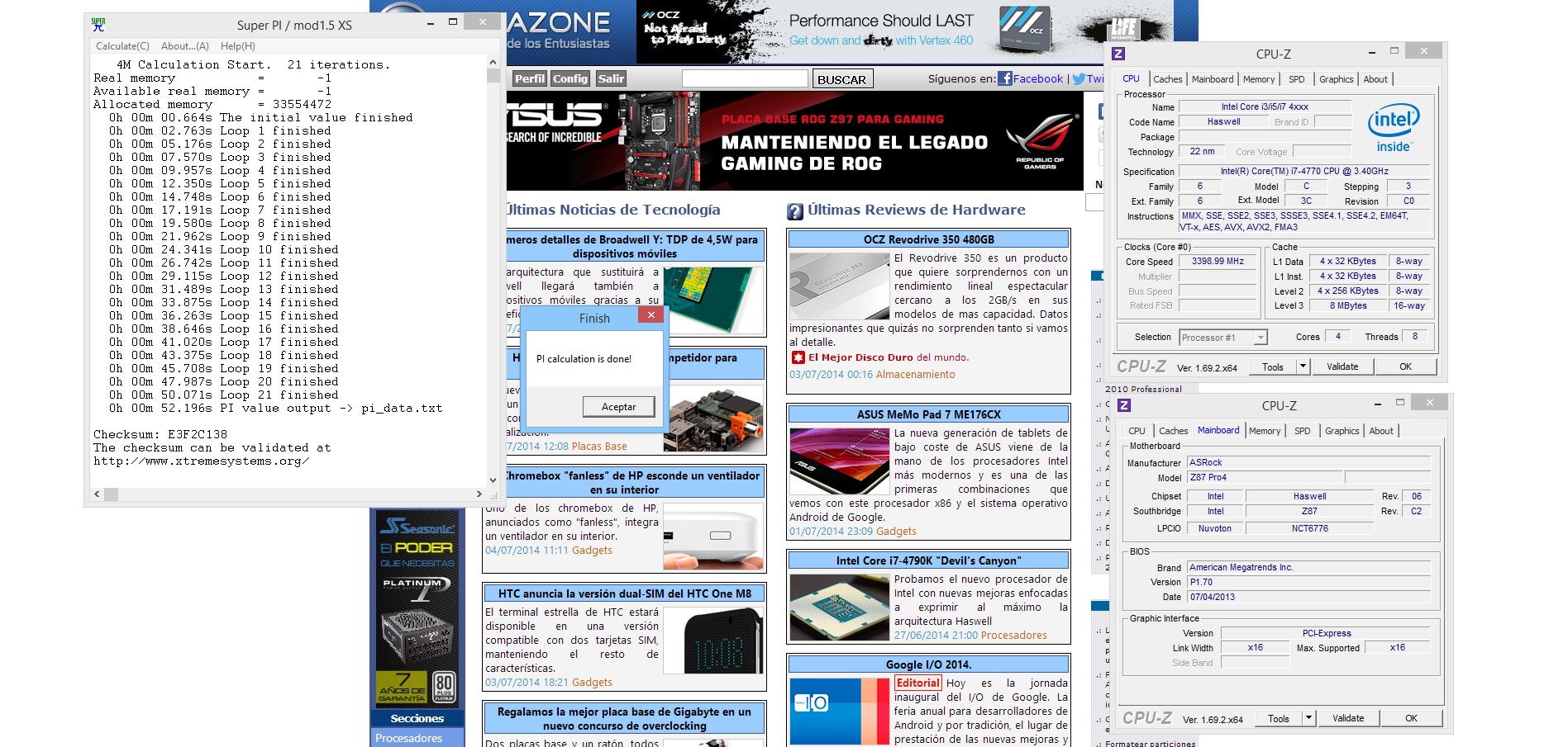 La captura con el resultado deberá llevar de fondo la web de Hispazone sin añadir posteriormente, por lo que en el momento de sacar dicha captura necesitas conexión a Internet.Originalmente publicado por 360nat Ver Mensajeuna cosa si paso el super pi en un ordenador sin conexion a internet ?