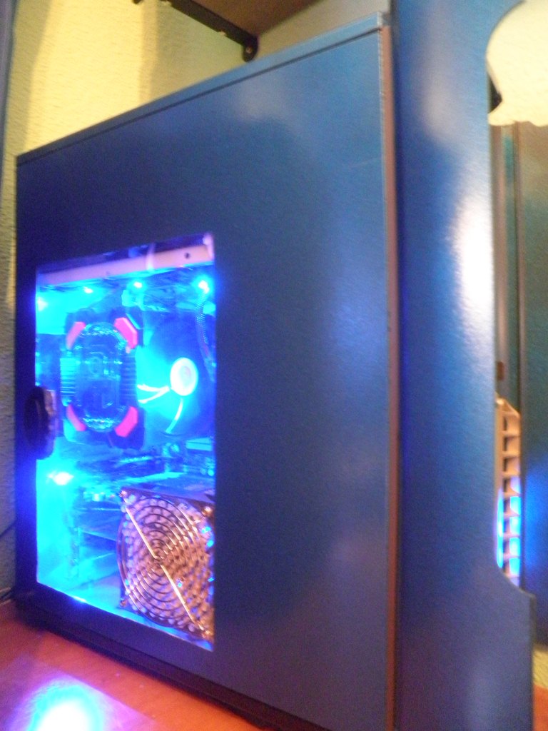 Los cortes los hice con la dremel, kise hacer un dibujo pero la chapa se me deformó y tuve ke hacer el corte completo. La lámina de metacrilato la compré en una tienda de modelismo, los agujeros los hice yo mismo. La pintura azul brillante a spray le dí un par de manos.