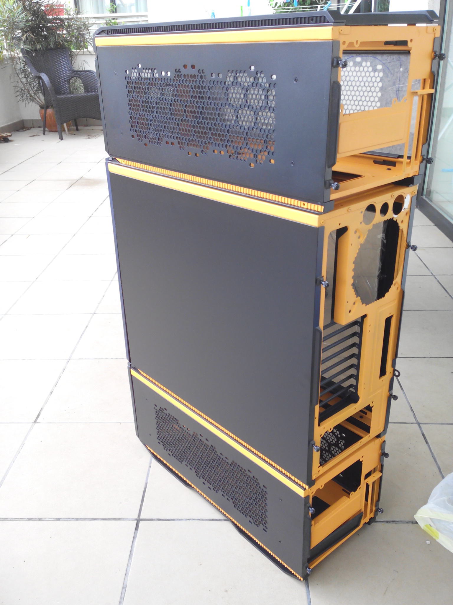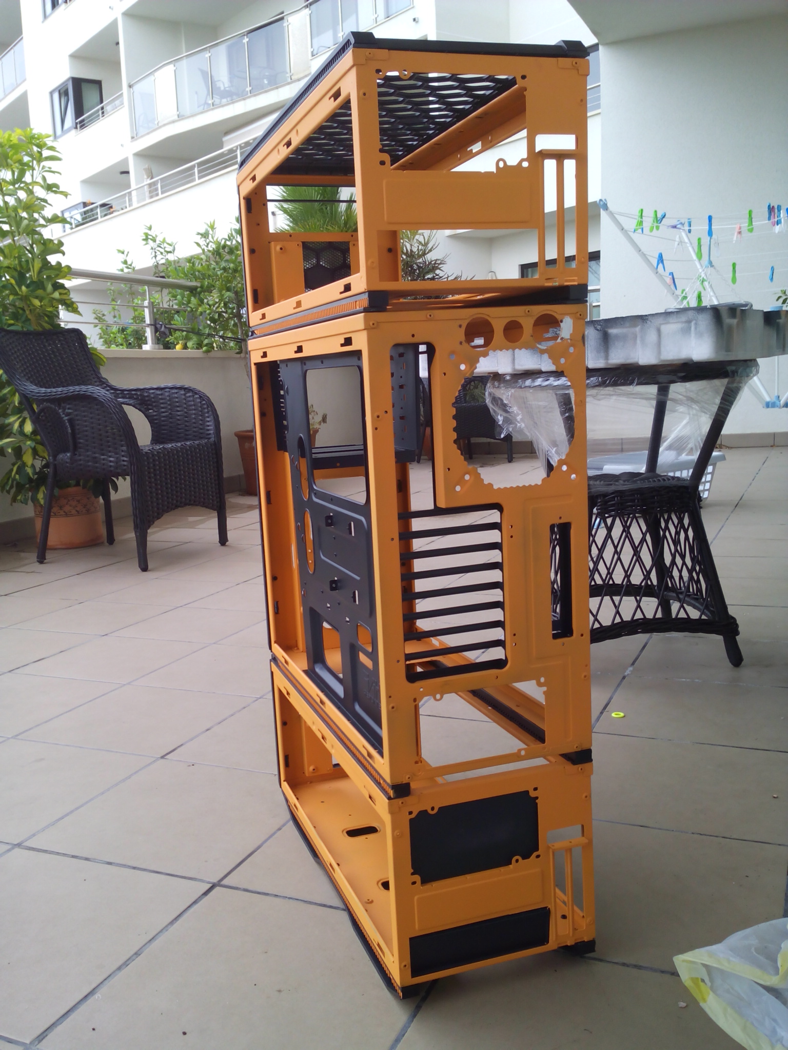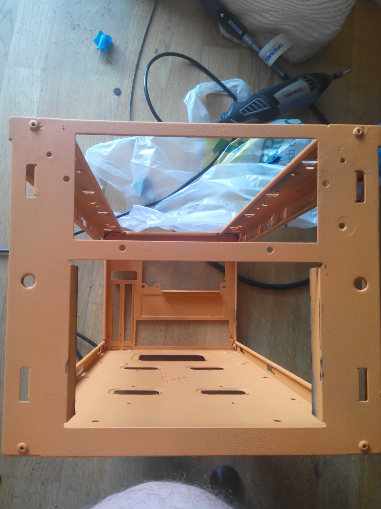 Si no fuera tan vago le metía mano a mi aerocool baydream q me encanta pero ya necesita una actualización en plan como la tuya. Recortes en la parte superior para aceptar un radiador de 2x14cm. Disminuir drasticamente las bahias de 5,25 pulgadas para aceptar un radiador frontal de 2x12 cm e ingeniarme un sistema de gestion de cables. Y ya de paso pintar... pero creo q eso sería lo mas dificil q yo haga.