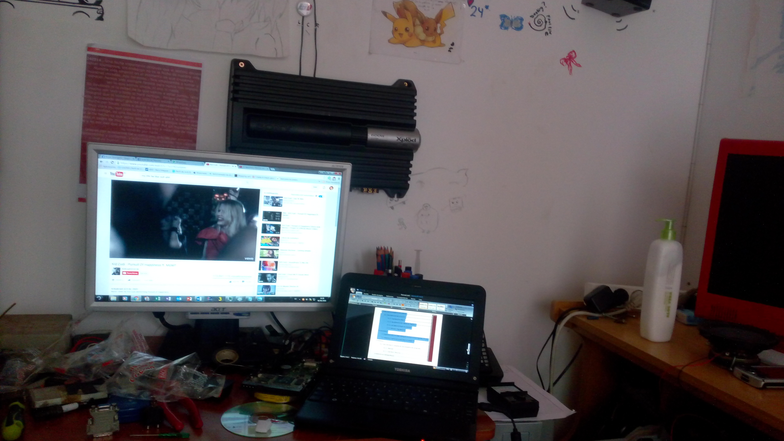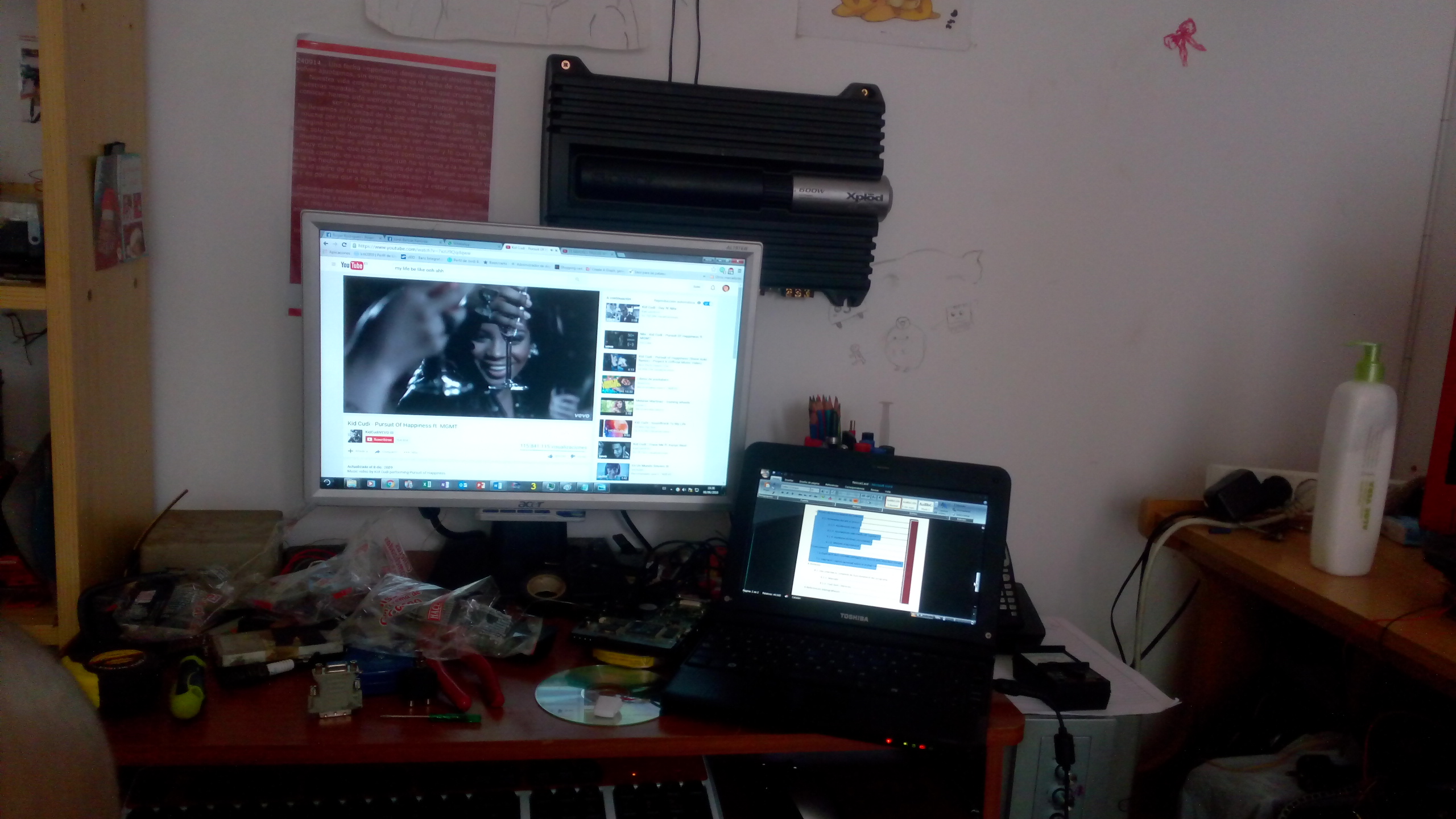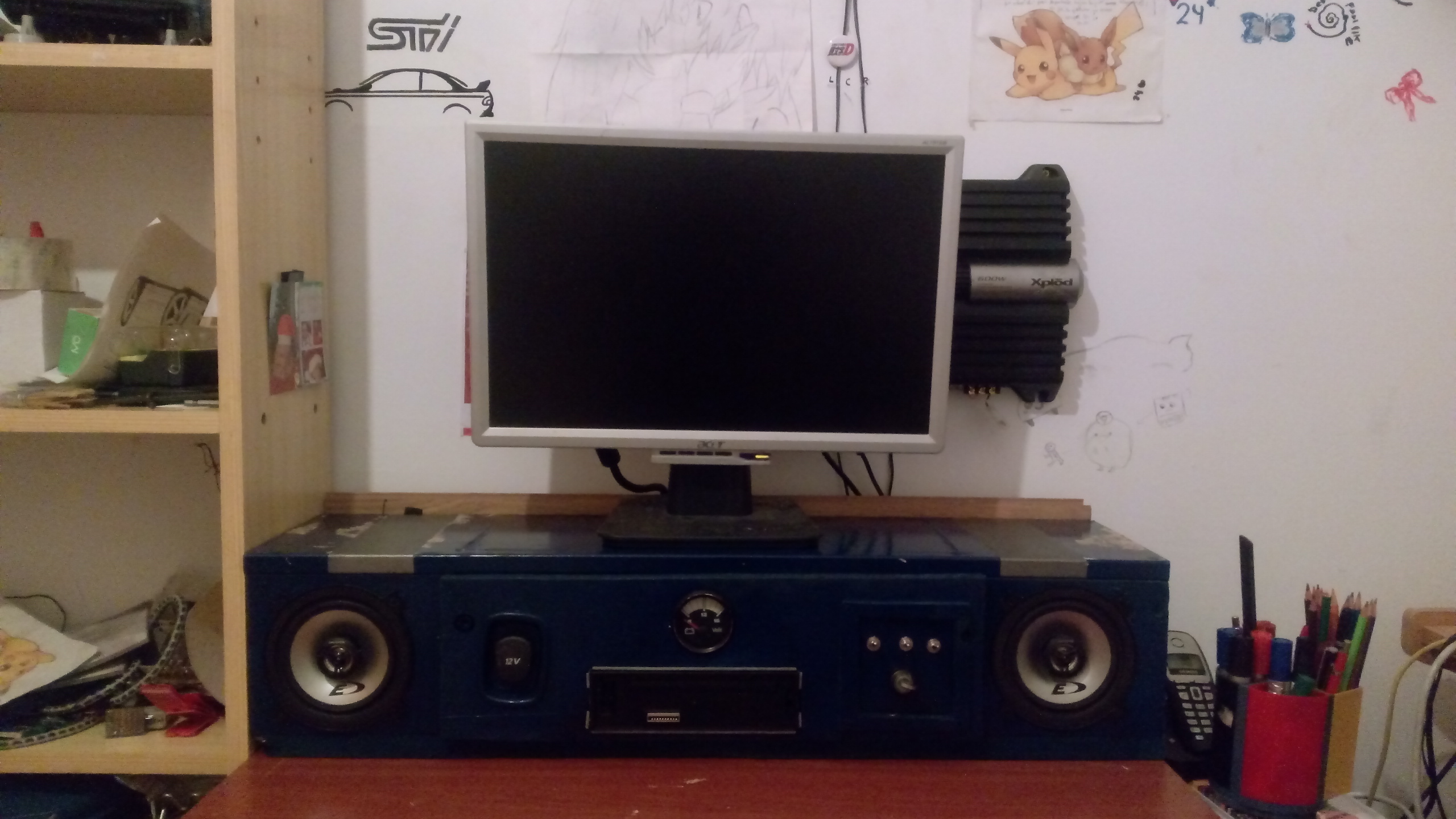 De momento os adelanto que tengo una etapa SONY Xplod XM-ZR604 de 600w, una radio Kenwood, y dos altavoces Alpine de 35/200w de 4 pulgadas que iran bajo el monitor...Todo depende de que consiga un mueble donante de madera, y algun conocido que me preste alguna que otra herramienta (mi tio es un maquina haciendo cositas asi que probablemente lo haria en su garaje, como le han operado hace poco del corazon, no creo que las vaya a usar...y tampoco quiero que me ayude, no quiero que le pase na xD) asi que de momento lo unico que os dejaré serán unas fotitos de lo que tengo. La puñetera desgracia que tego es que no tengo un duro, y nadie me quiere cambiar un subwoofer de 10" por nada, asi que de momento tengo un 8" de 150w en una caja de mierda con un puerto muy mal calculado que empeora bastante los graves y no los deja bajar mucho.