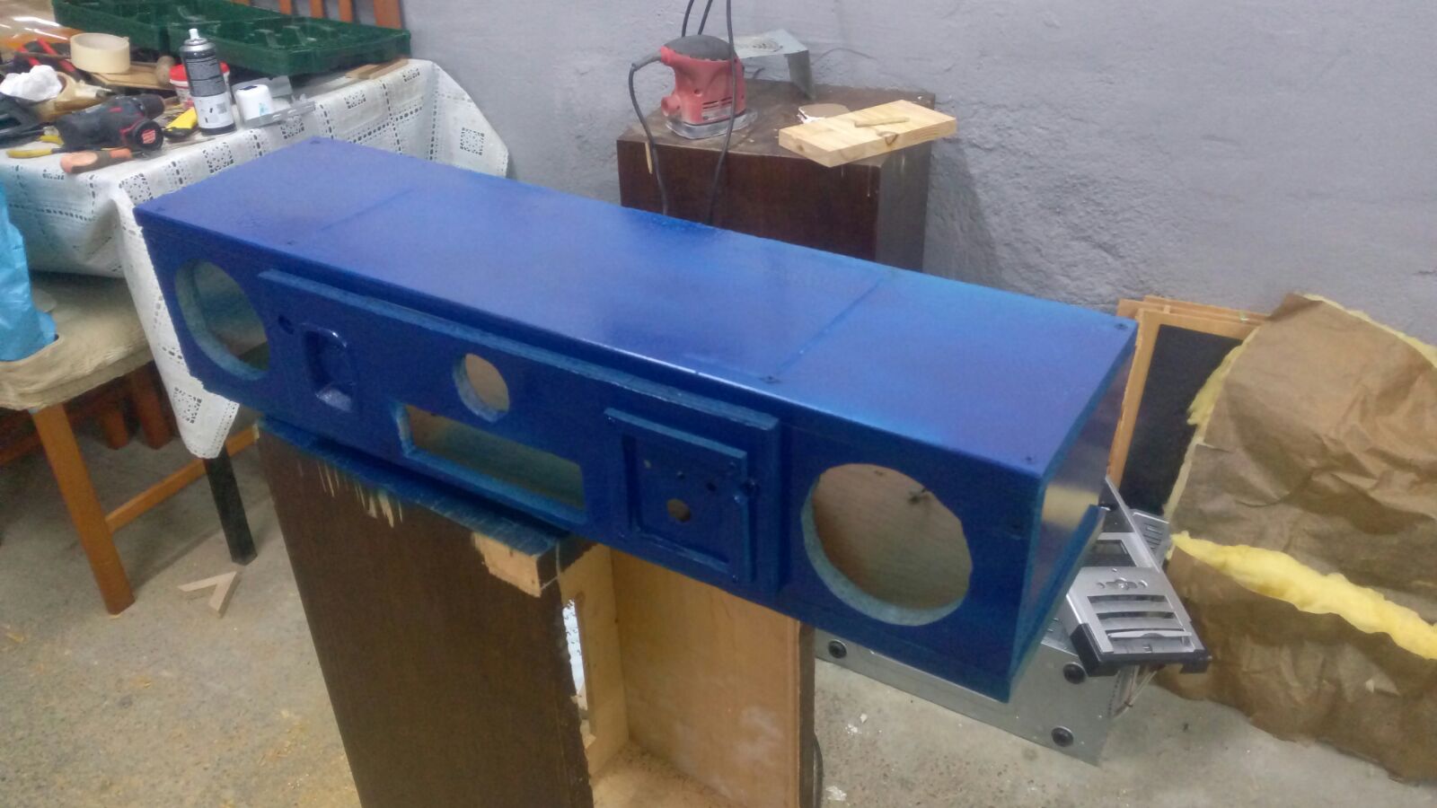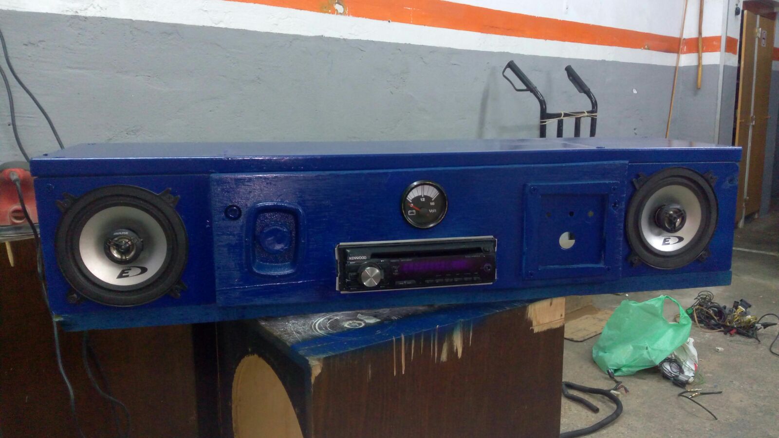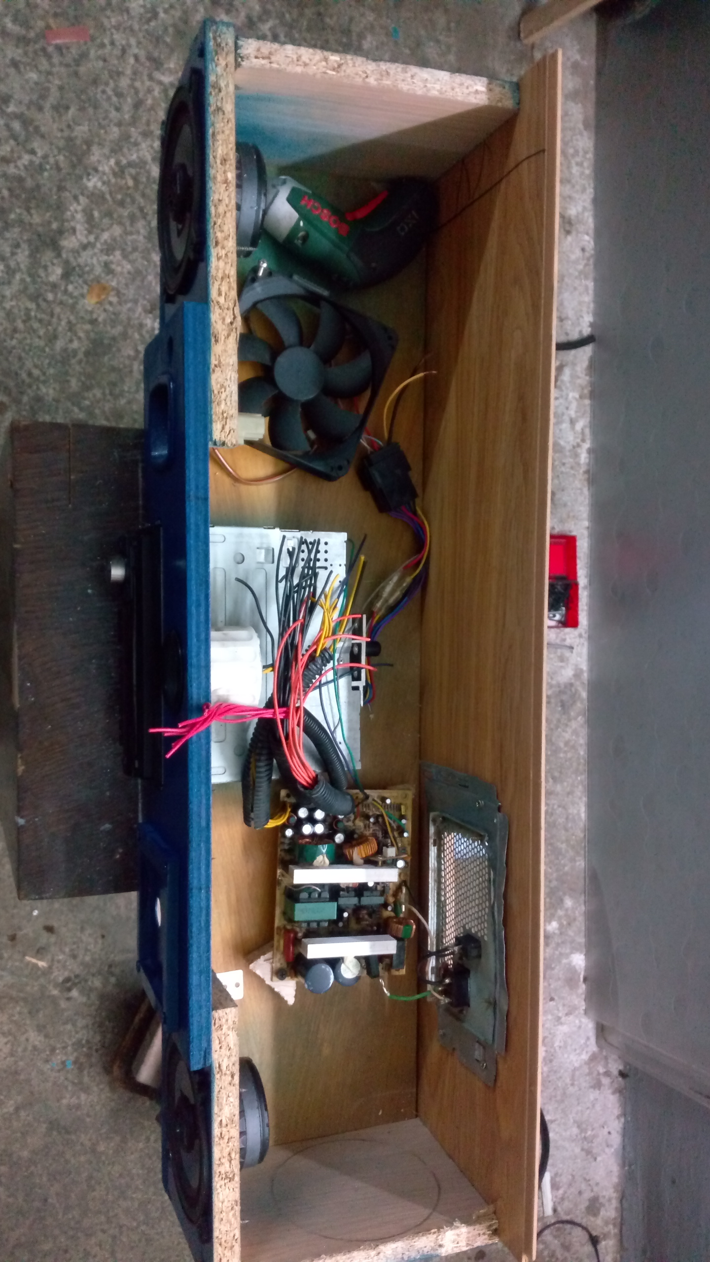 El sub de 8" que tengo vive ahi dentro, y el que ponga de 10" con caja reducida tambien ira ahi dentro, dado que tengo poco espacio y ahi por alguna razon suena muy bien. Admirad al viejo cajon de subwoofer sacando la "lengua" jajajaja