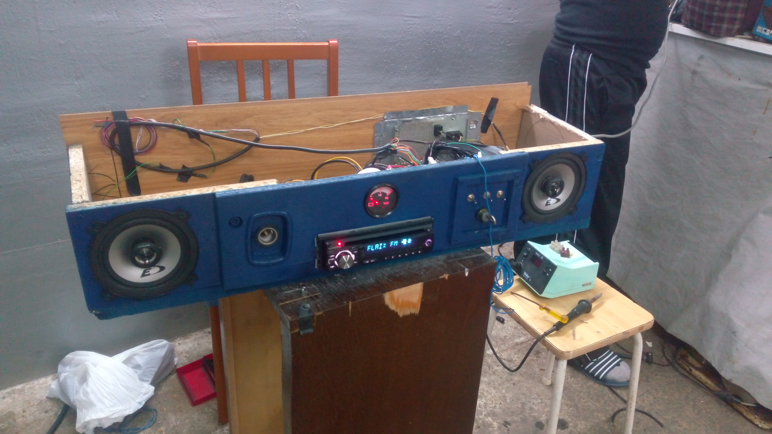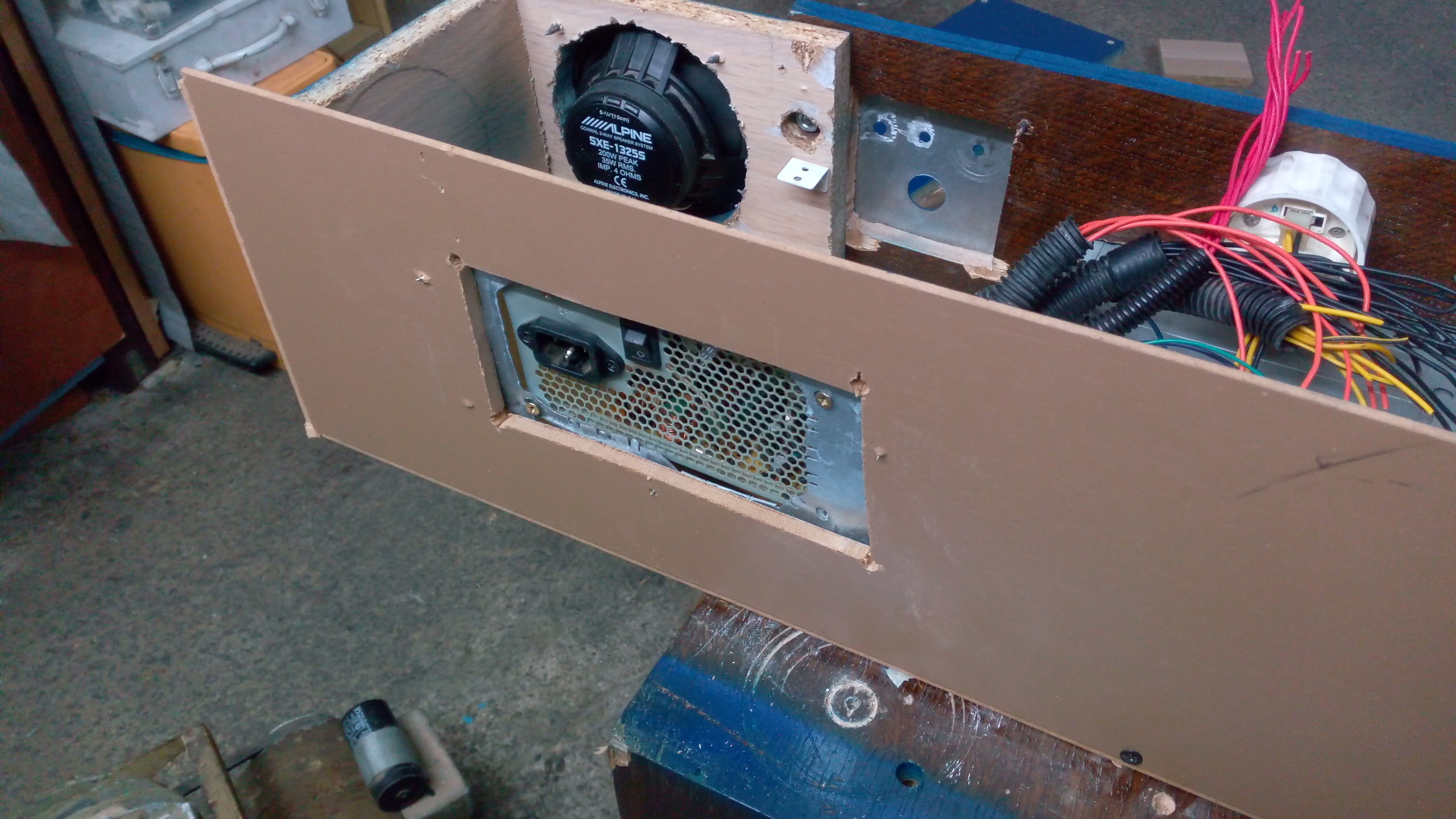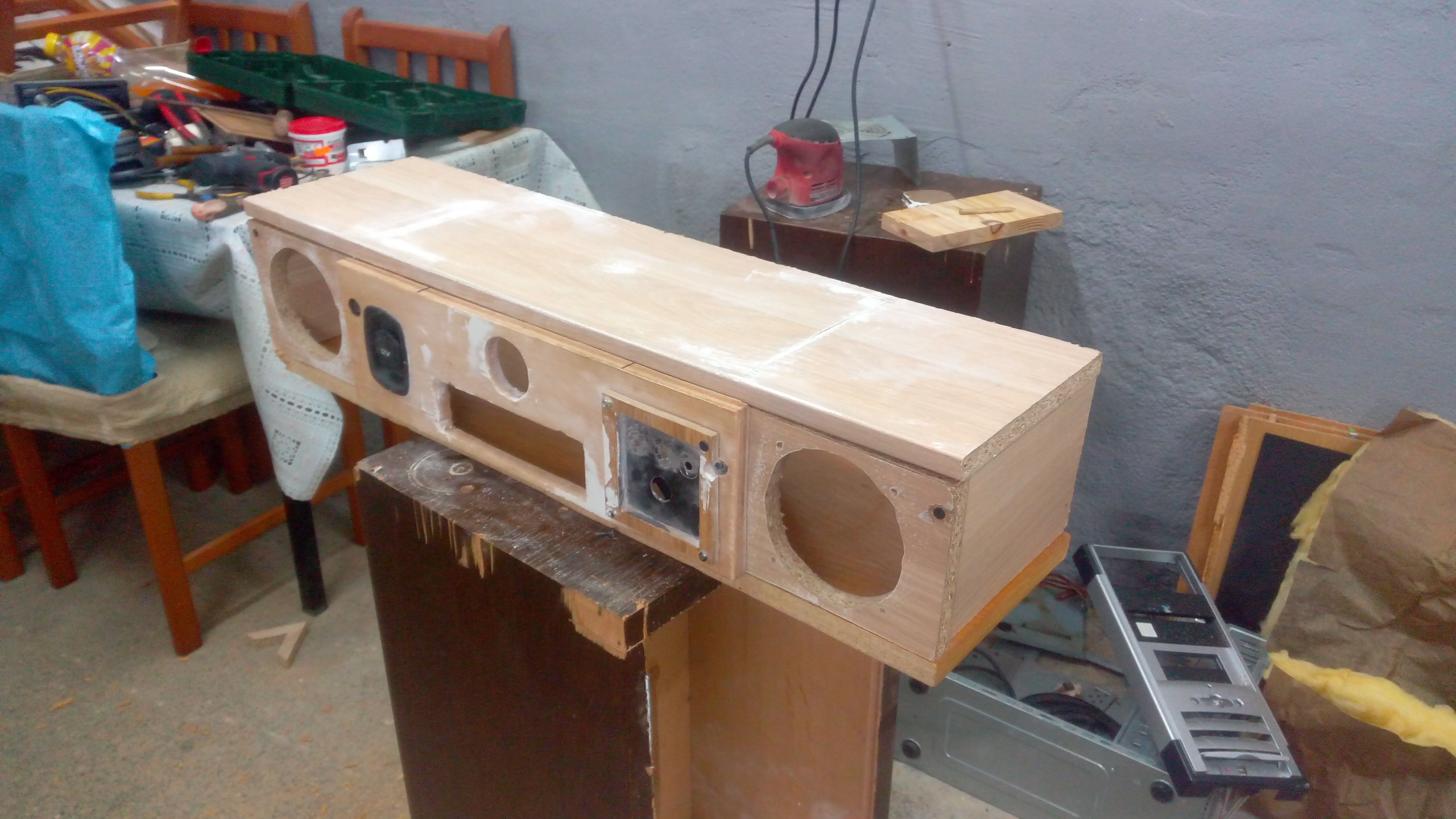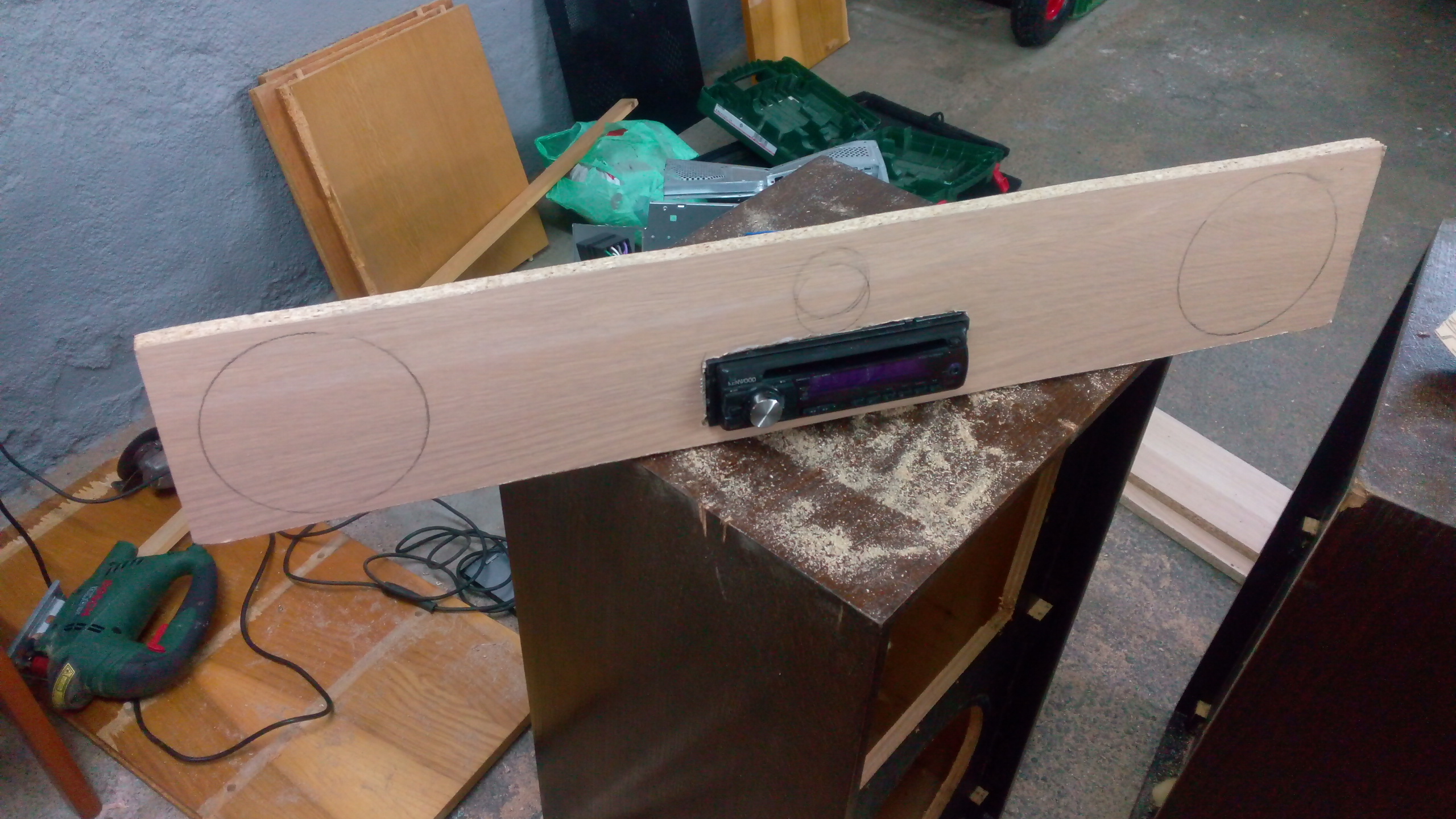 El sub de 8" que tengo vive ahi dentro, y el que ponga de 10" con caja reducida tambien ira ahi dentro, dado que tengo poco espacio y ahi por alguna razon suena muy bien. Admirad al viejo cajon de subwoofer sacando la "lengua" jajajaja