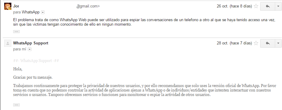 -Si no ofrecen funciones para monitorear /espiar a sus usuarios, y yo estoy usando una funciona nativa de WhatsApp de manera que puedo espiar, la seguridad se ve un poco comprometida.
