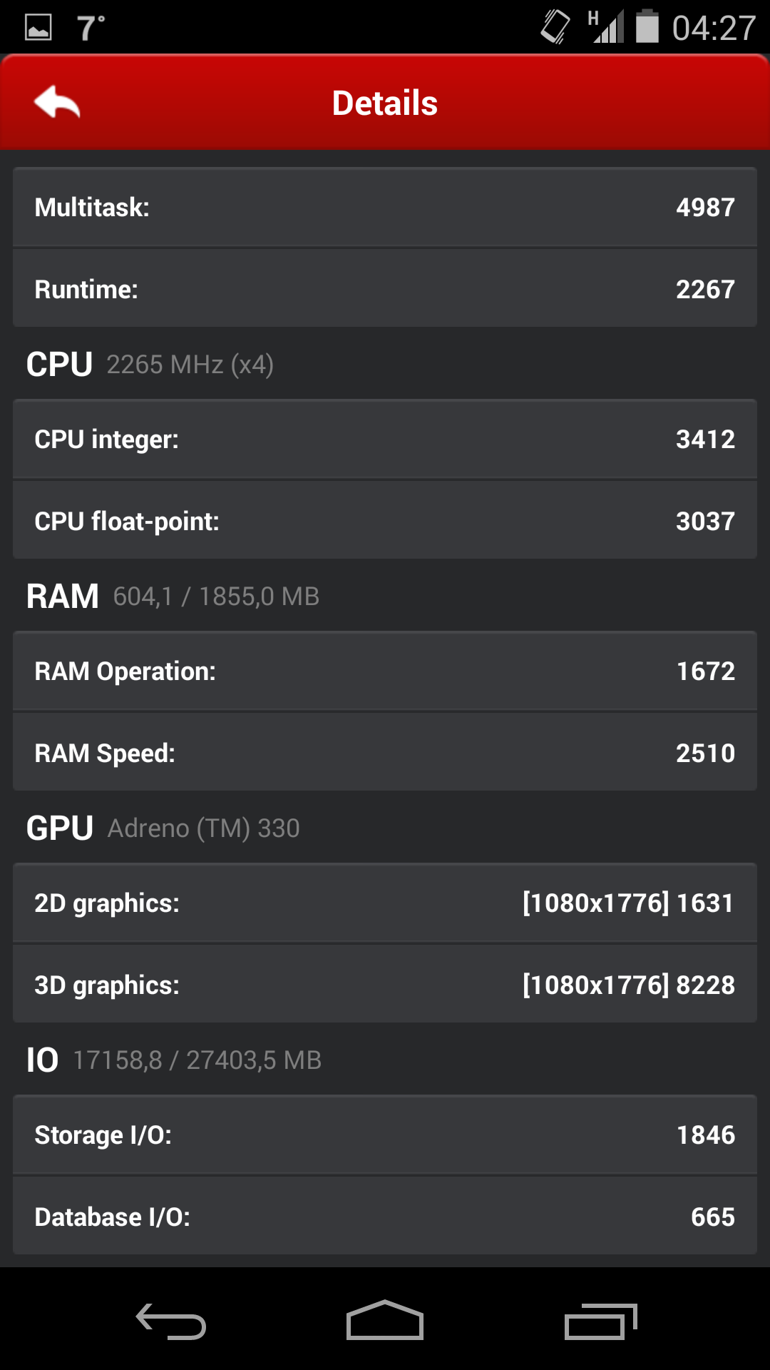 Aquí pondremos los resultados del test AnTuTu, conocido por exprimir el procesador al máximo.