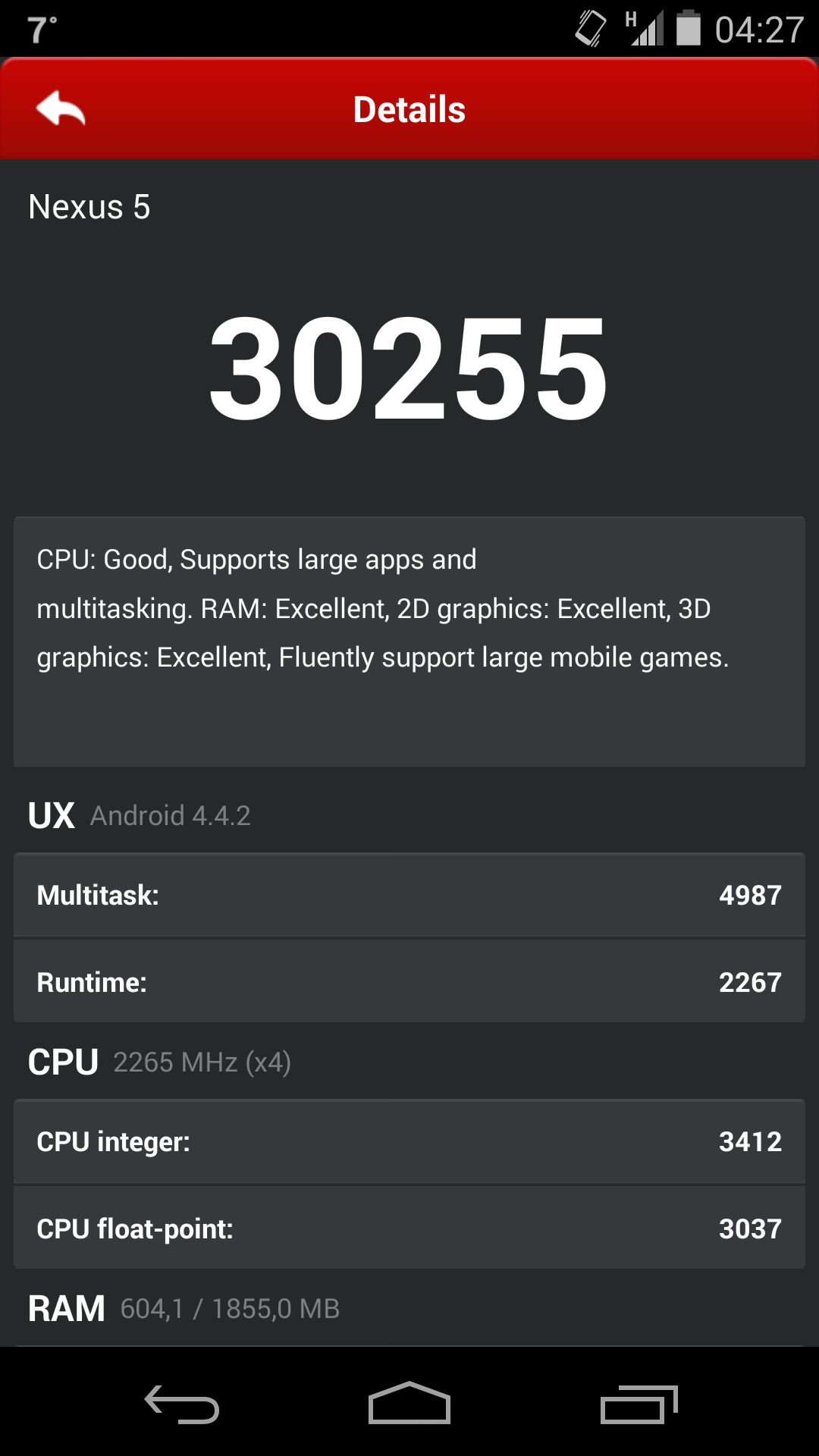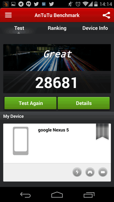 | Nexus 5 | Qualcomm Snapdragon 800 2.26 Ghz |