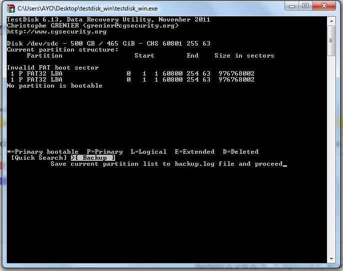 17 Pero el mismo programa advierte en la siguiente pantalla de que el Boot Sector (de mi disco) tiene un "status:Bad" mientras que el "Backup boot sector status está OK". Es decir que hay algo que no es coherente.