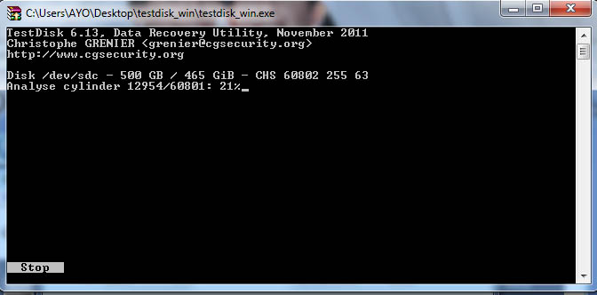 2 Descargo Test disk (Descargar Testdisk). El ejecutable se encuentra en la carpeta testdisk-6.11.3\win (si es en Vista o 7 ejecútalo con privilegios de administrador. Boton secundario sobre icono y "ejecutar como administrador")