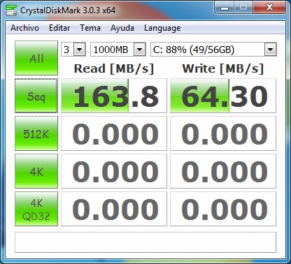 Media de escritura: 64.3 MBps