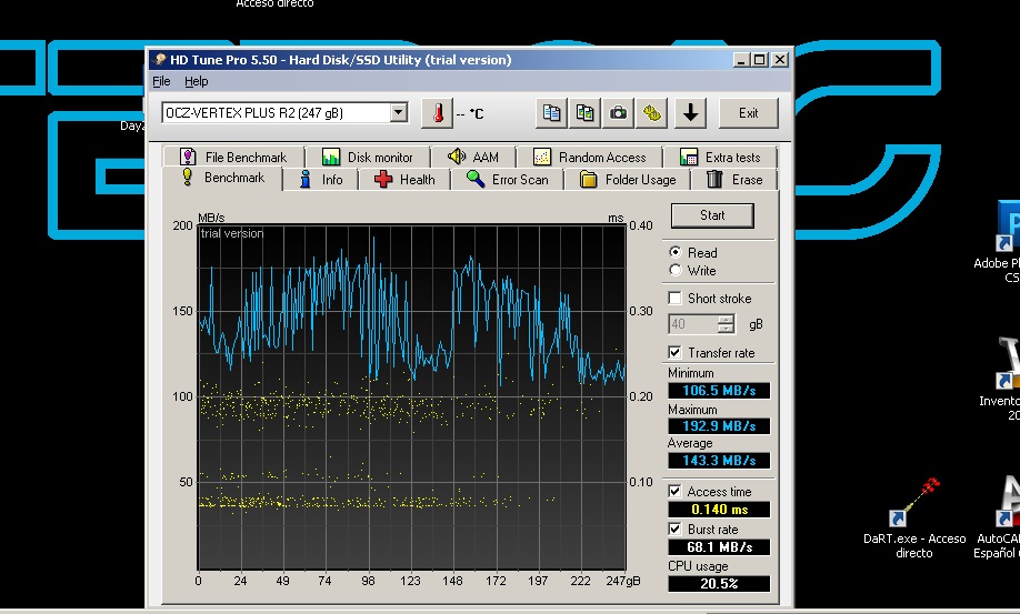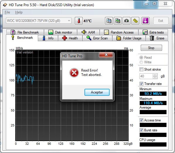 Se especificará el modelo completo, si está en IDE, AHCI o RAID y la captura con la velocidad de lectura: