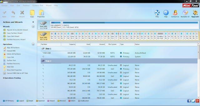 Hola, ayer tuve la gran idea de usar mi disco duro externo de 500g donde guardo todas datos personales para usarlo como disco booteable para una instalación de windows 10. La instalación a través del administrador de microsoft fallo, cuando intenté entrar en el disco vi que este había generado una partición de 32gb. y que mis datos no estaban, después de entrar en pánico, mediante la aplicación mini tools 9.1 conseguí hacer un scan del disco para intentar recuperar la información, pero me he encontrado con lo que podéis ver en la imagen, muchísimas particiones de diferentes formatos, entiendo que mis datos deben de seguir ahí, pero no se como puedo volver a visualizarlos desde windows. antes usaba ubuntu en otro pc y entiendo que por eso hay esas particiones de ext2,3,4.