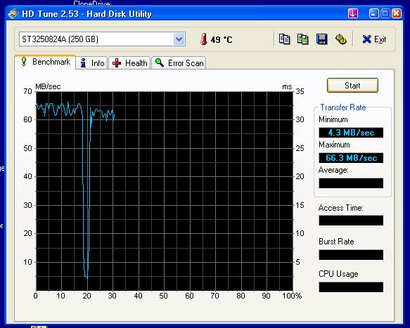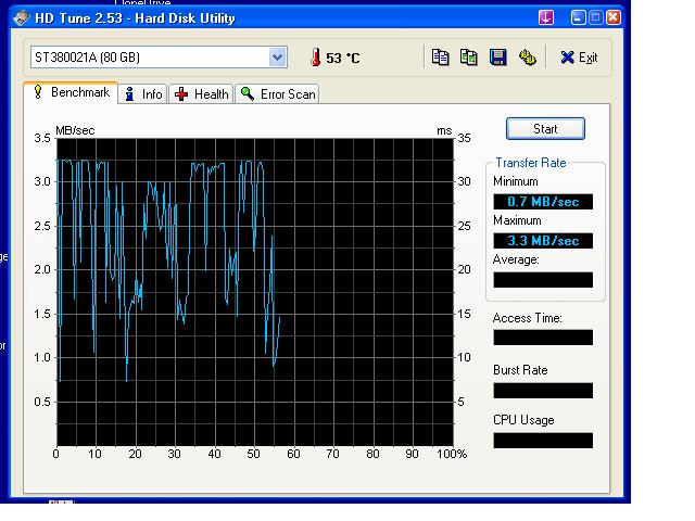 Puse el HD TUNE y aquy adjunto miniaturas...mirais...3Mbyte/sec !!!