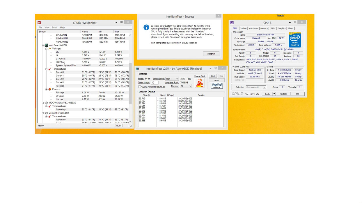 Para probar la estabilidad se han pasado los tests; Cinebech, x264, LinX, IntelBurnTest: