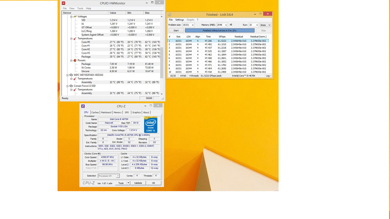 Concretamente con un i5 4670K en una Asrock Fatal1ty Z87 Killer. Iré actualizando esta guía conforme encuentre valores estables de OC, con capturas de pantalla para cada test para demostrar su estabilidad.