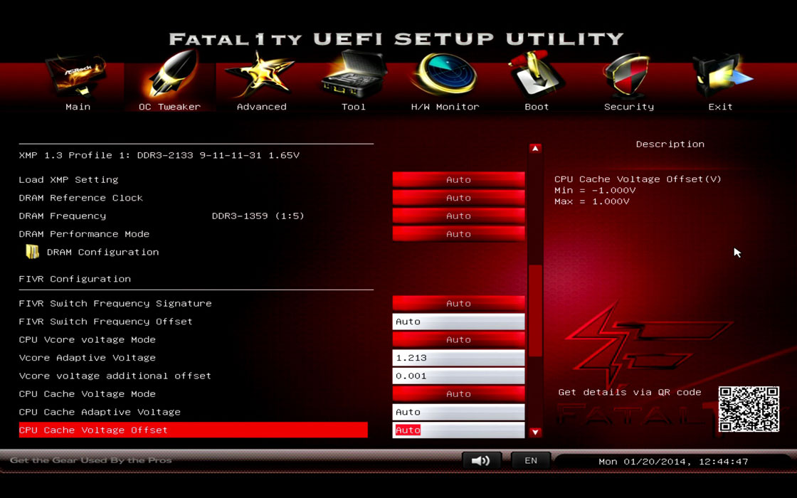 Vcore: Es el voltaje que definirás para el procesador, para Haswell suele estar entre 1.25v y 1.38v para un overclock decente. A mayor multiplicador, mayor deberá ser este valor.