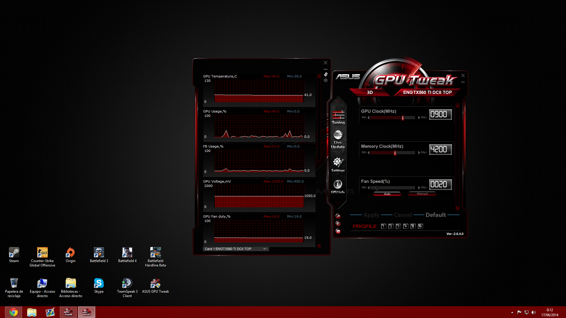 Yo a mi gráfica nunca le he hecho OC, la verdad es que en tema de gráficas voy mal (para eso). No sé que utilidades escoger ni nada, a ver si me asesoras un poco!Originalmente publicado por Peybol Ver MensajeActualizado!