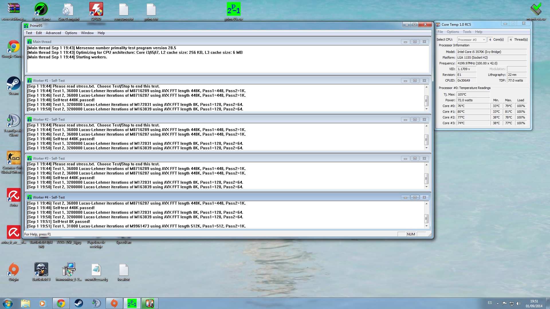 Hola gente, he realizado a mi i5 3570k un oc de 4.2 (3.4 por defecto). Pero me aumenta hasta 80º en prime98 :S.