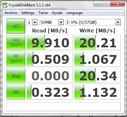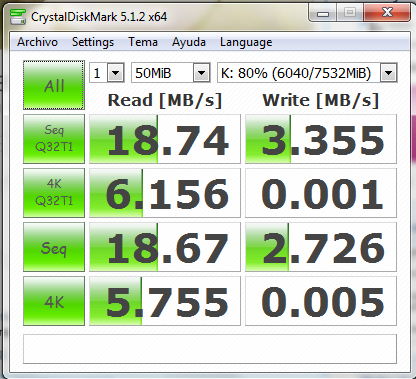 Para comparar, he decidido hacer la misma prueba con un pendrive Kingston DataTraveller, y estos han sido los resultados: