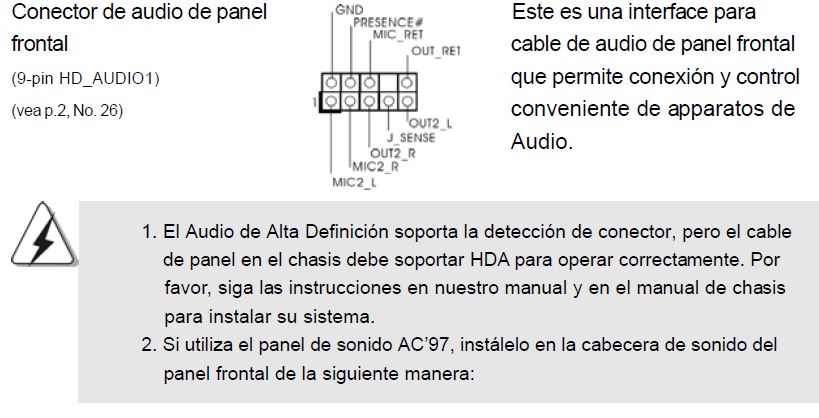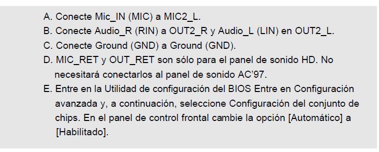 En los conectores que trajo mi panel frontal tengo: