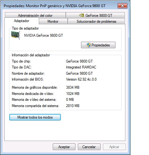 Tengo una placa madre Intel DX58SO, procesador intel cori 7 920@2.67 GHz, y la placa de video Viewmax Geforce 9800 Gt, memoria ram ddr3 de 6Gb.