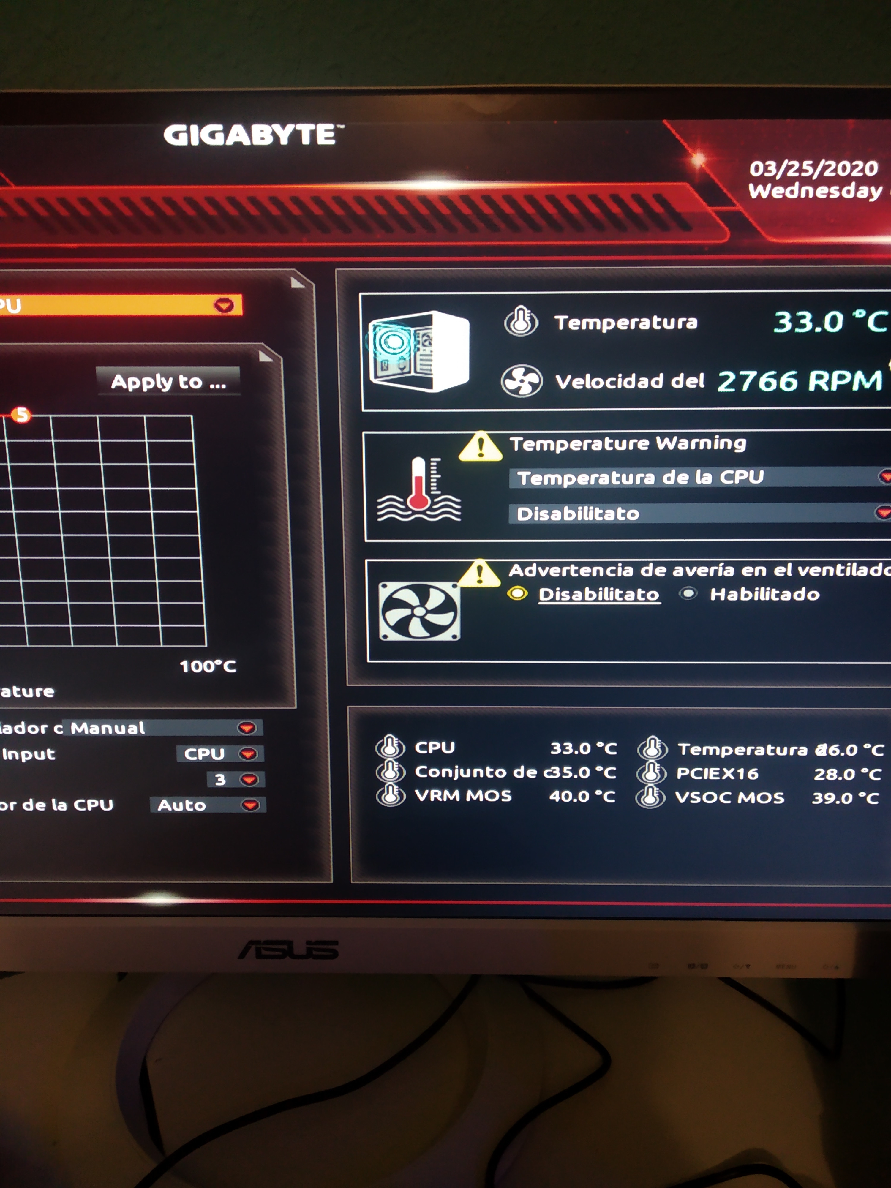 Os adjunto las fotos de la bios con las temperaturas de los programas y un video de los ventiladores.