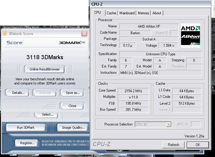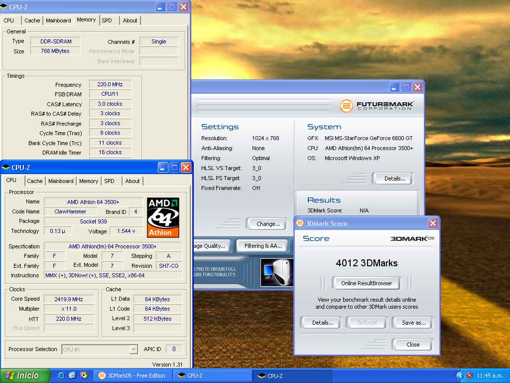 He realizado el test con el 3dmark05 y aqui va mi puntaje con el equipo que se ve en la firma.