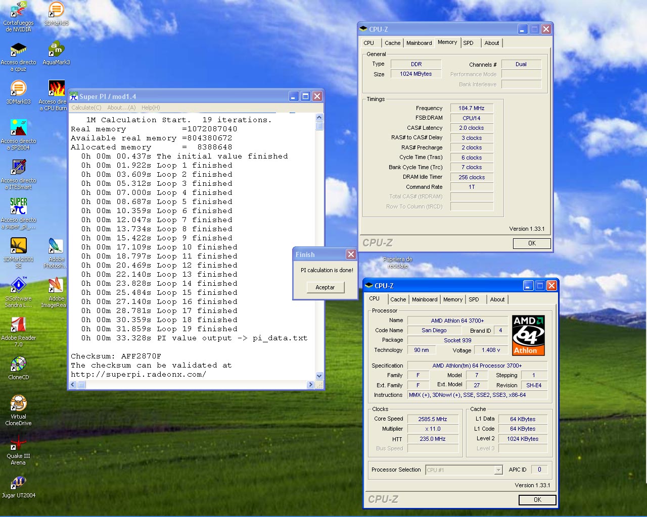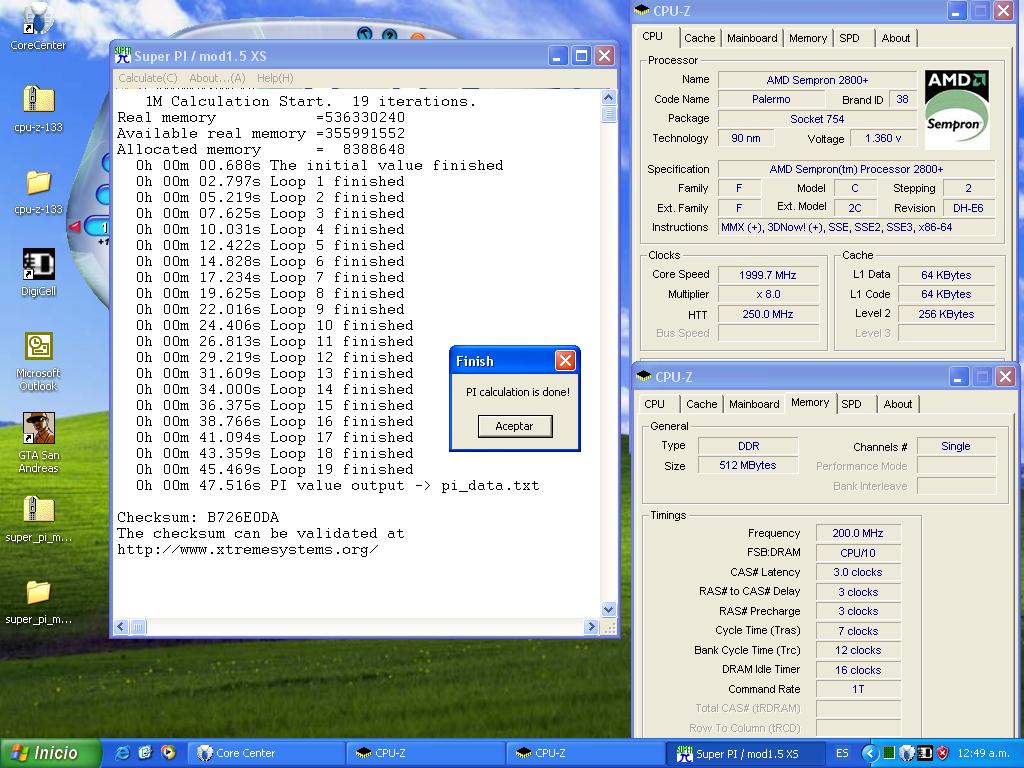 Se que no es la gran cosa, pero me parecio buen resultado, para unas memorias de Cas 3 y un sempron2800+ @ 3400+