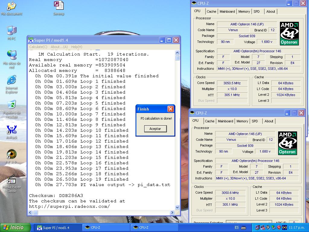 Aqui va un single core opteron 146 mi maquina vieja luego subo del x2