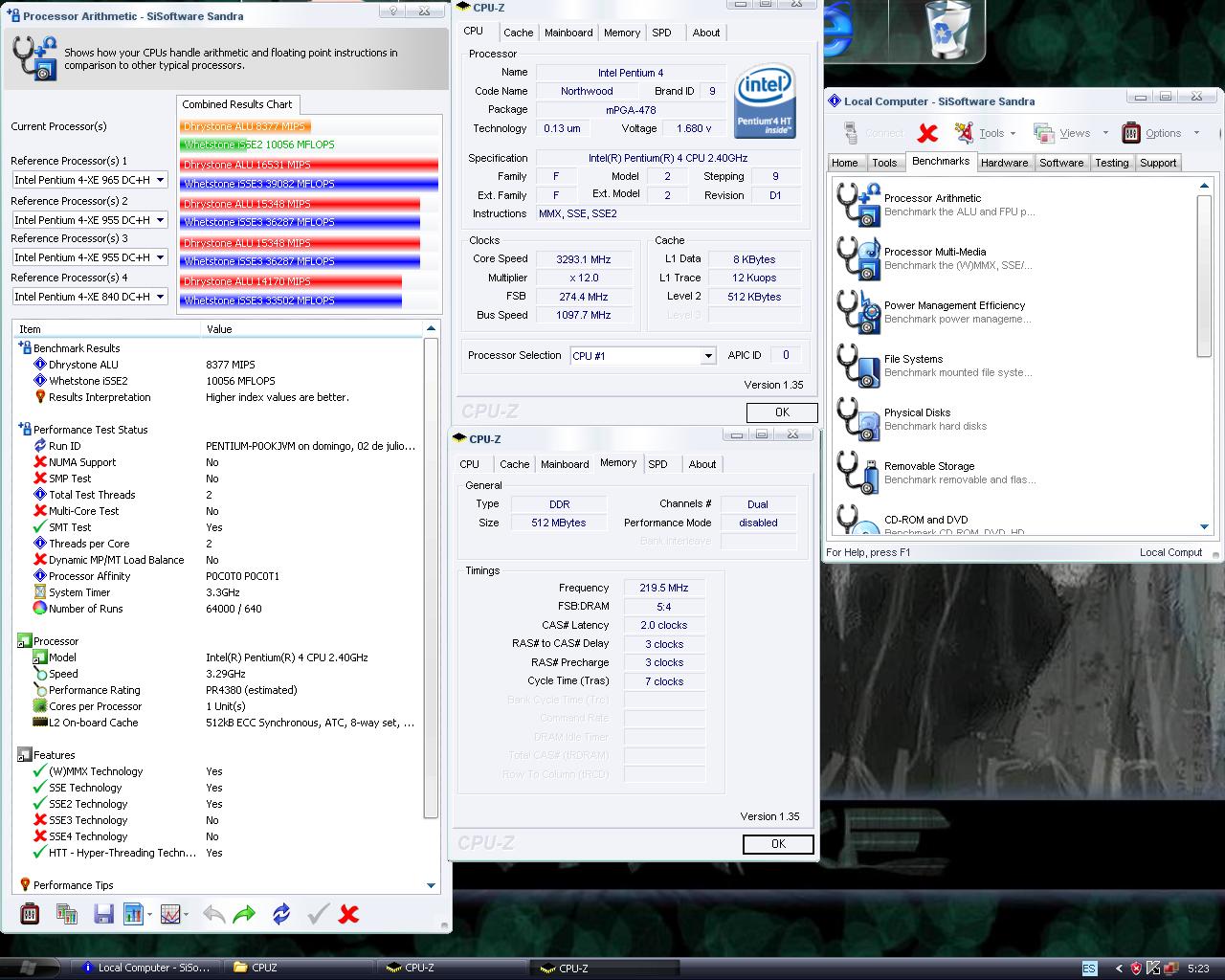 Bueno aqui va mi segunda prueba, subiendolo mas el fsb275 ya me daba menos rendimiento... asi que por ahora esta es mi mejor marca... ya que el bus lo tengo por las nubes