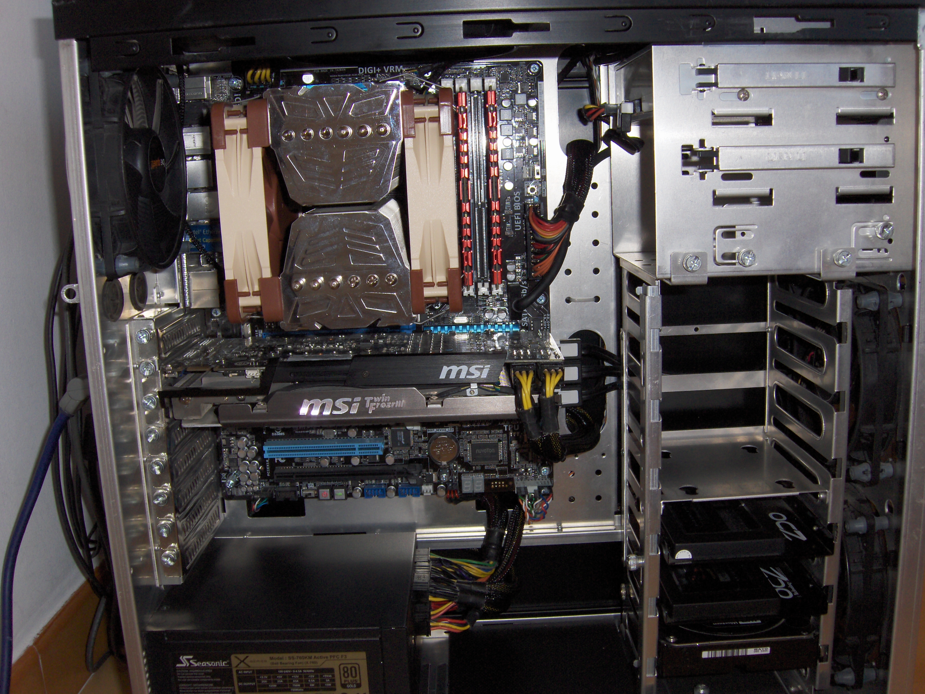 2) La incompatilididad de su ventilador delantero de 140mm con los disipadores de las memorias, obligando al usuario a levantarlo demasiado afectando negativamente a la estética. La solución está en comprar memorias de perfil bajo, montar un ventilador de 120mm o directamente no utilizar el ventilador delantero lo que va en detrimento de sus prestaciones (en mis pruebas en torno a los cinco grados de diferencia).