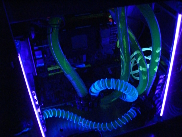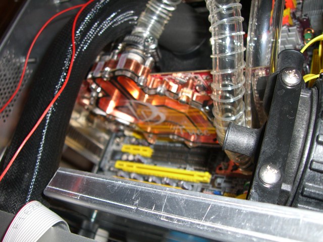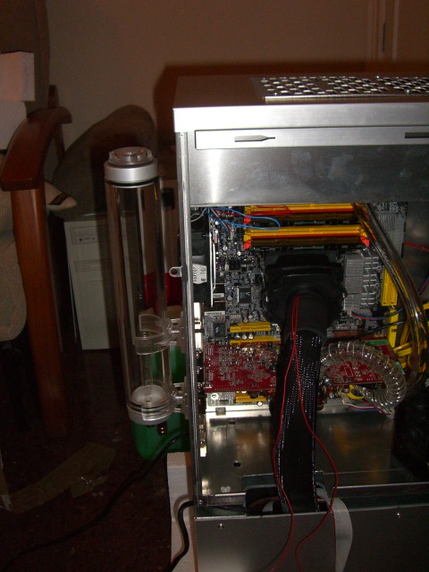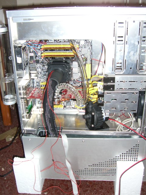 Pues ya tengo montados en la caja el radiador, la fuente y montados en la placa el bloque para la liquida y el bloque en la grafica.
