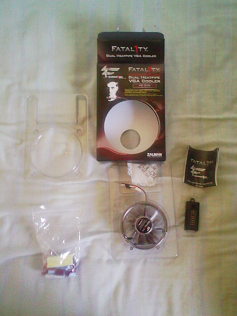 Bueno ya he instalado el Zalman FC-ZV9 Fatal1ty.La verda es que no es muy complicado lo que mas me costo es sacar el ventilador de serie es que el pegamento de goma era muy fuerte he tenido que ir deslizando muy suavemete el disipa para que al los 5 min consiguiera quetarlo.Bueno y si Chinoman tenias razon Zalman son la ostia no tengo sonda de temperatura pero aun asi poniendo la mano al lado de la VGA se nota aire fresco y no como con el de serie que me quemaba la mano.