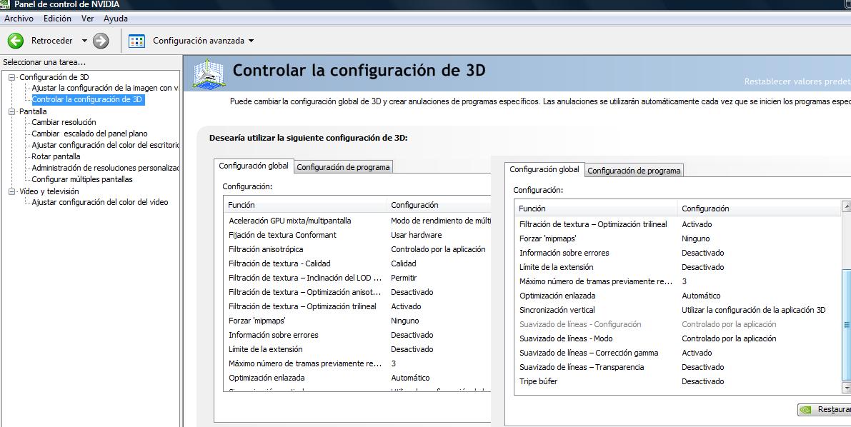 ahi te ajunto una imagen de la captura del menu de 3D, pegado al lado la ventanida desplazada hacia abajo. asi estan los ajustes predeterminados.