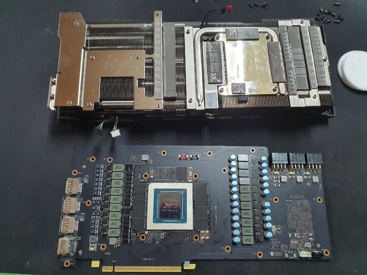 Cuando separéis el disipador, tened cuidado con los cables que van hacia los ventiladores (y al RGB en caso de haberlo) ya que de un tirón podéis romper su unión con la tarjeta. También tendréis que desatornillar.