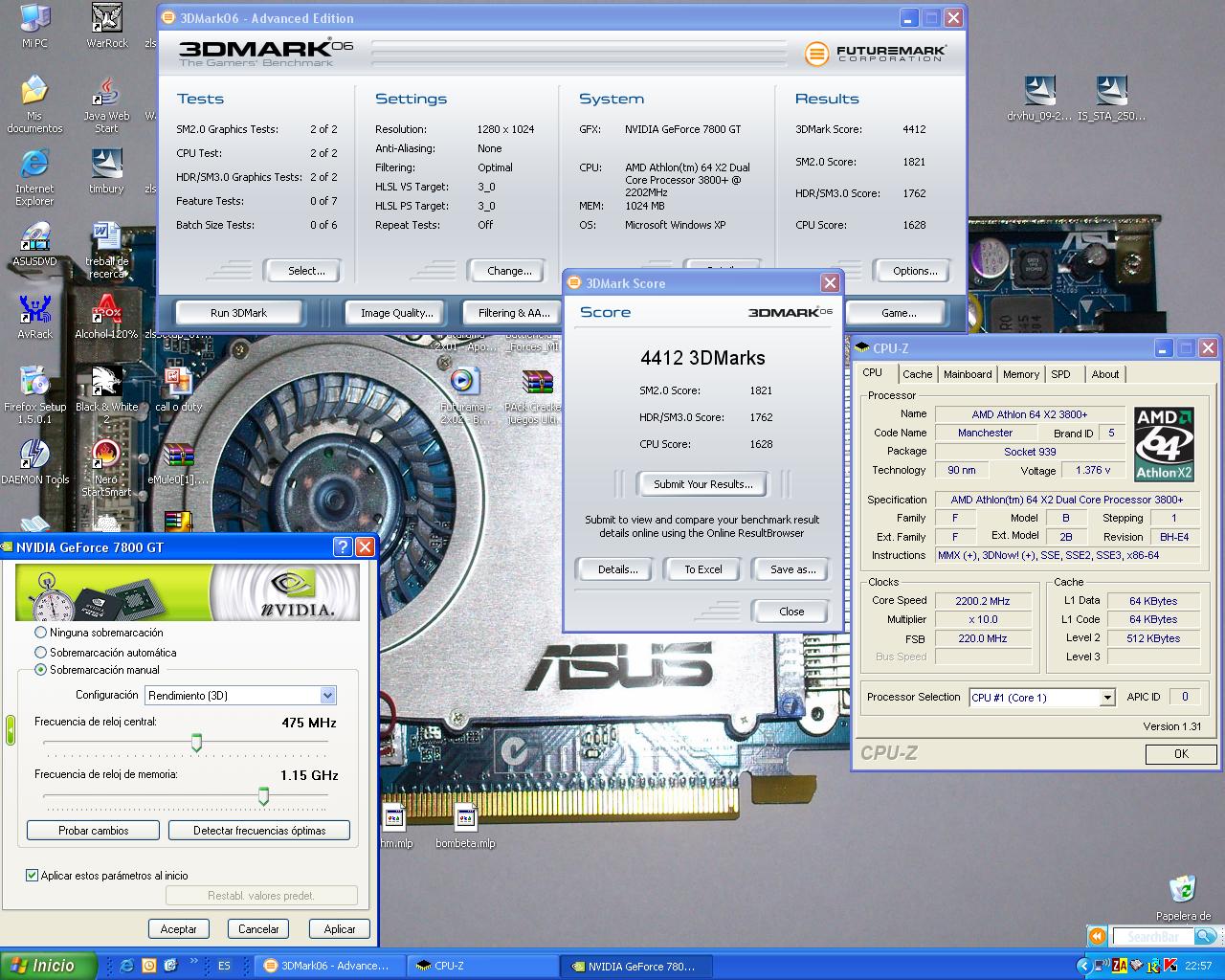 Como podeis ver, con un Fx57 que vale sobre los 800euros + una 7800Gtx XXX que vale sobre los 700euros, apenas dan ni los 5000 puntos en este Test.
