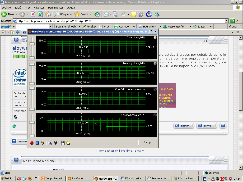 mirad la grafica y vosotros imaginaos como me he sentido, de 78ºC a 43º en nada... y sigue bajando... bua estaba to acojonao...