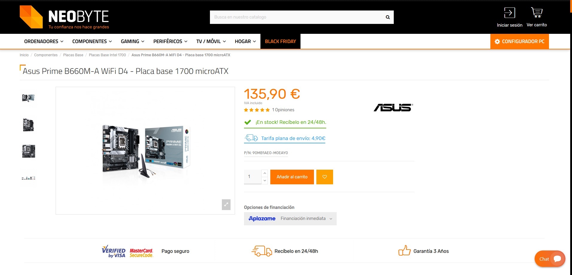 Placa base: Asus Prime B660M-A WiFi D4, 135.90€ Neobyte