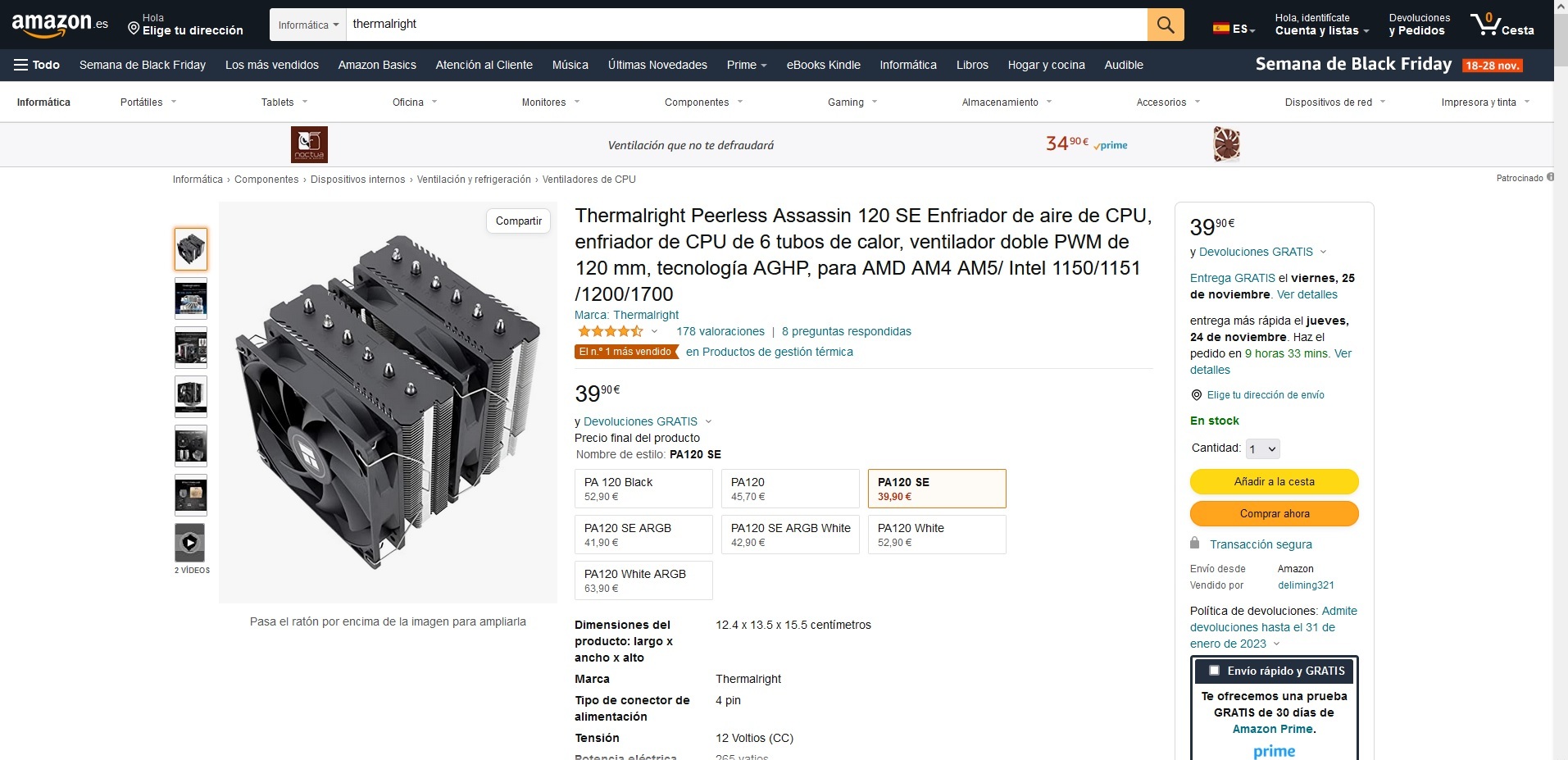 Disipador CPU: Thermalright Peerless Assassin 120 SE, 39.90€ Amazon
