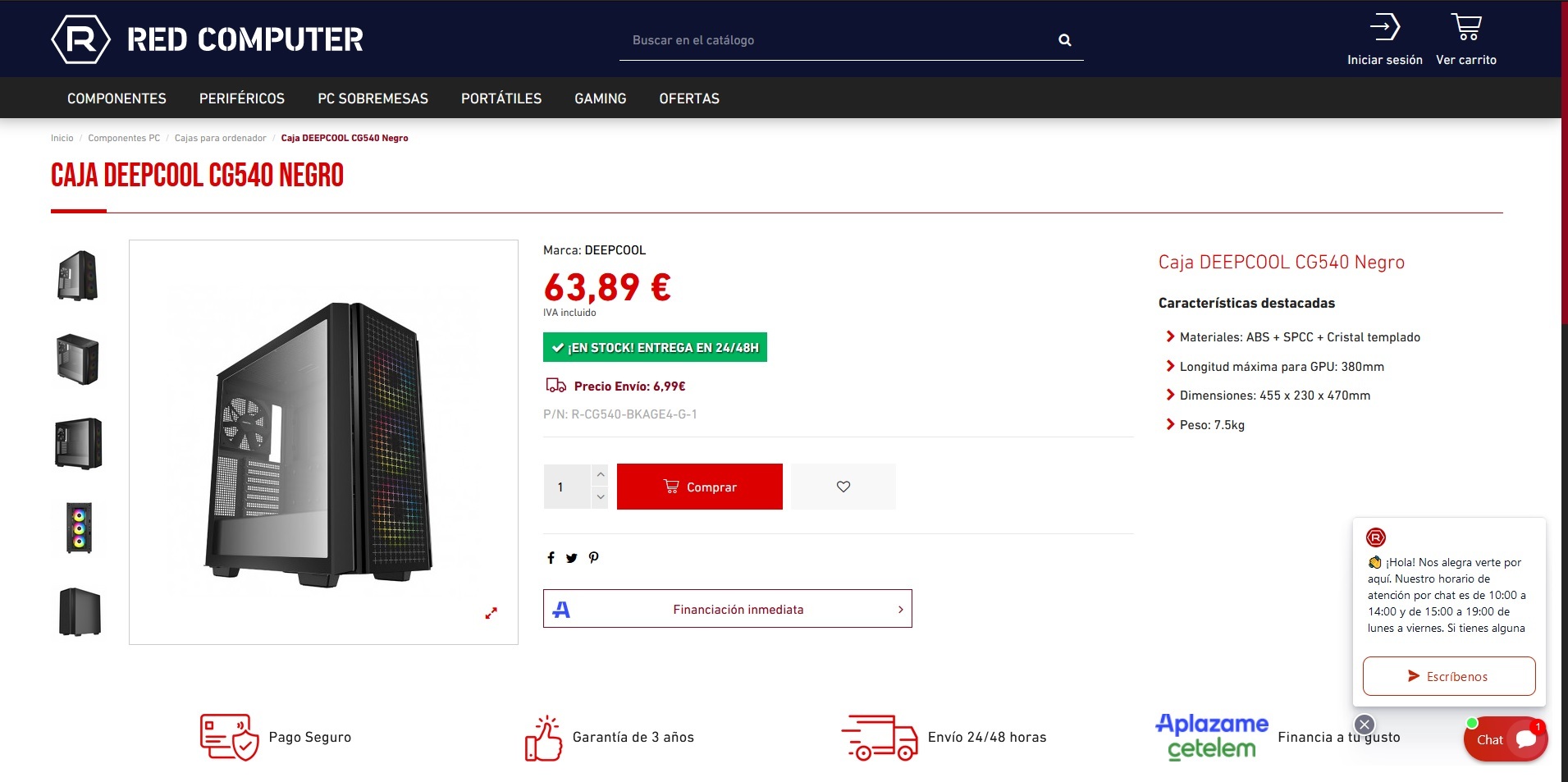 Caja: DEEPCOOL CG540 NEGRO, 63.89€ Red Computer