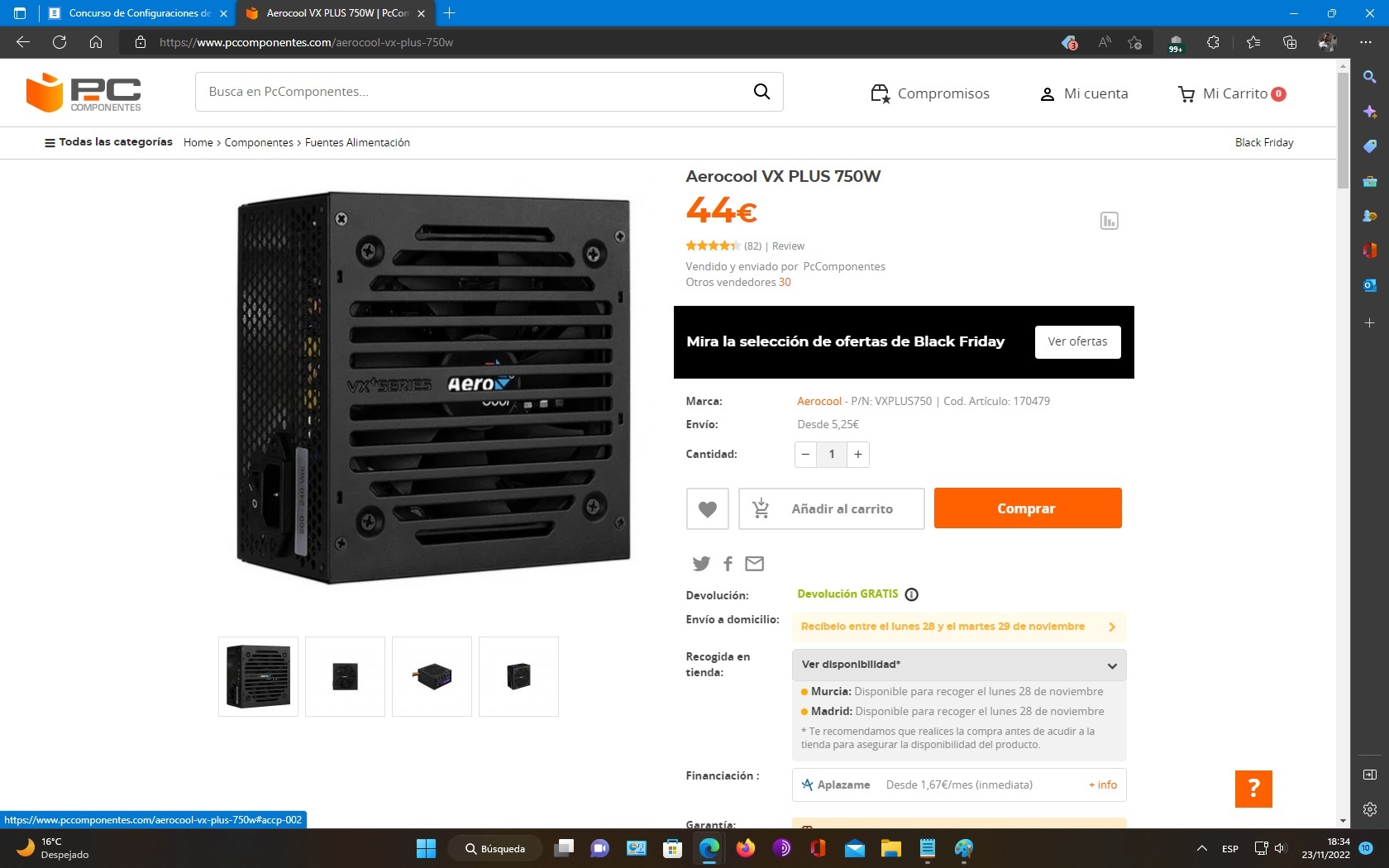PSU: Nfortec Vanth 850W 80 Plus Gold Modular(https://www.pccomponentes.com/nforte...0-b1cacc1bedab)-119.94€