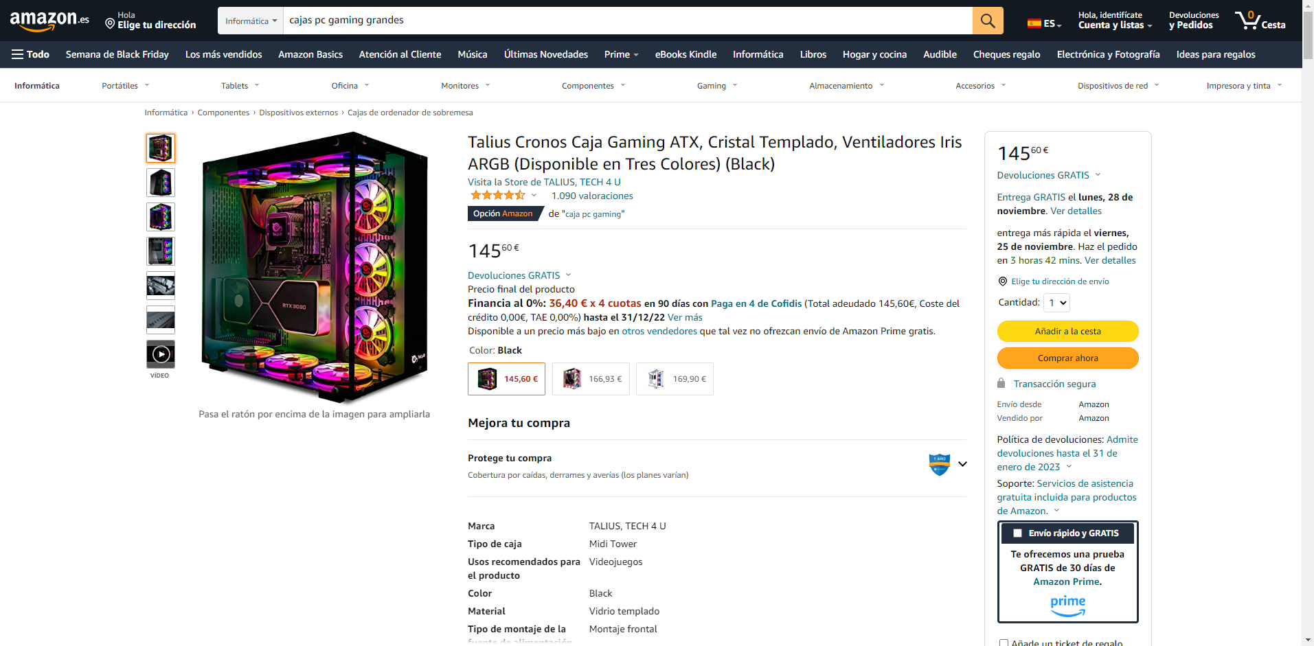 Caja gaming: Cougar Gaming Caja PC Gaming Archon 2 RGB(AMAZON-130,96€)