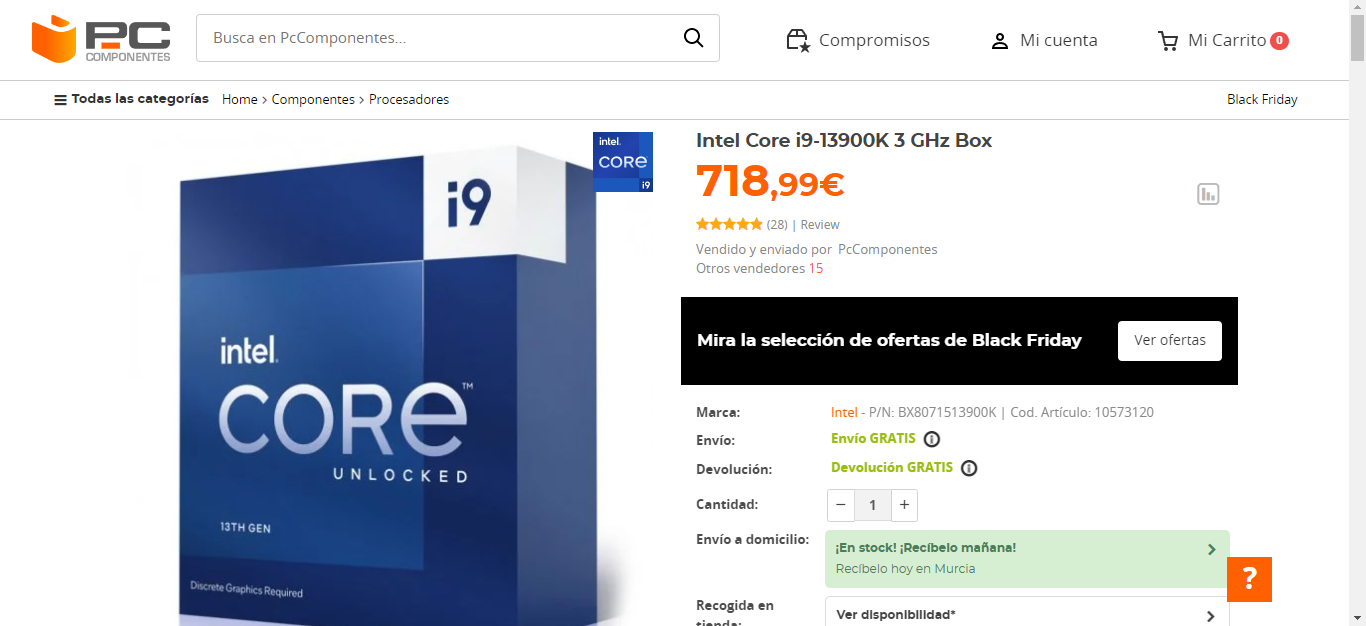 Procesador: Intel® Procesador de Escritorio Core™ i9-13900K(AMAZON-867,71€)