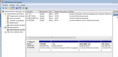 - Partición D: (Recovery) Es la que contiene el sistema de recuperación del equipo.