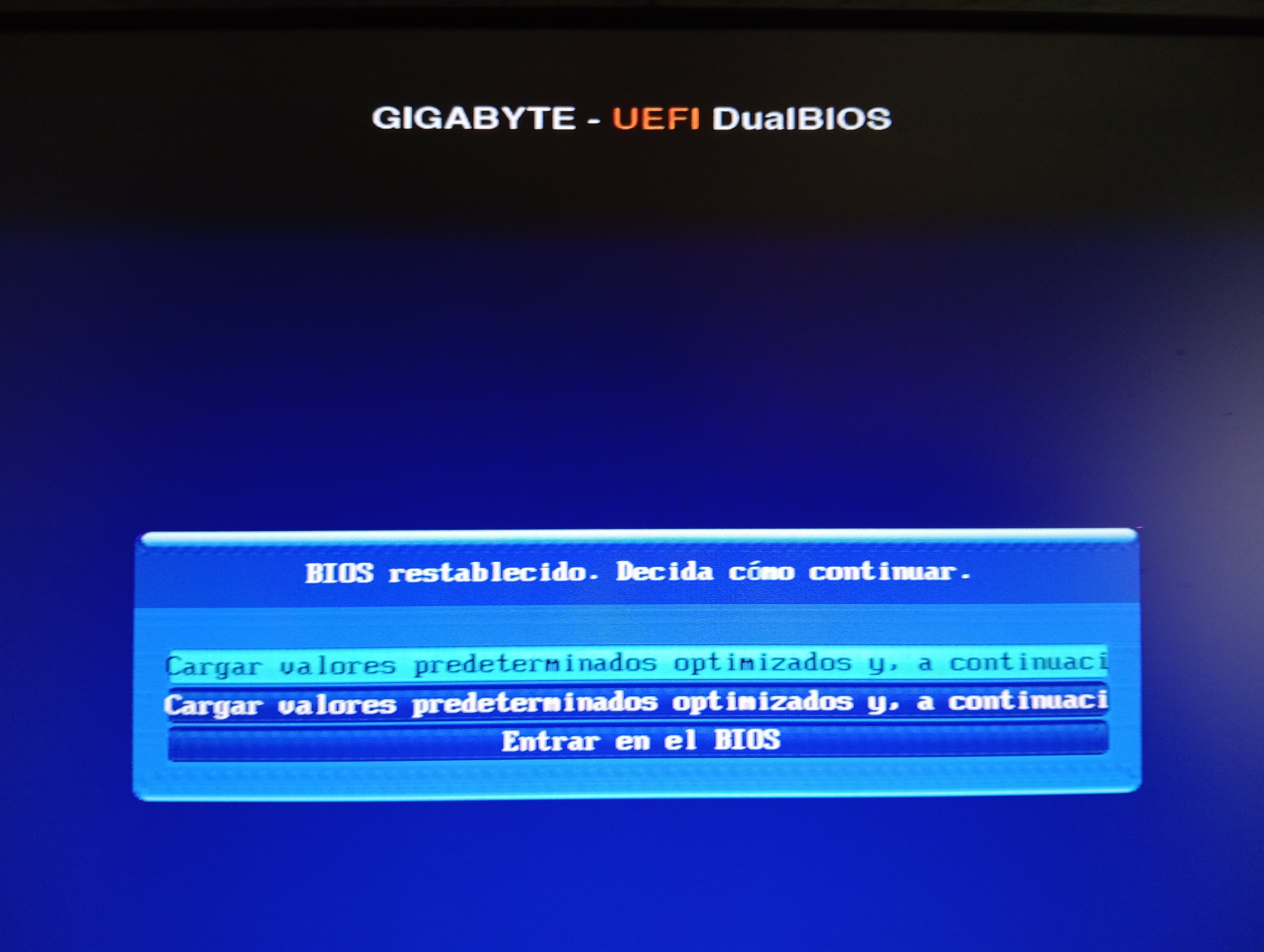 Cada vez que arranca el ordenador me sale este aviso. Selecciono cargar valores predeterminados y se pone a funcionar con normalidad.